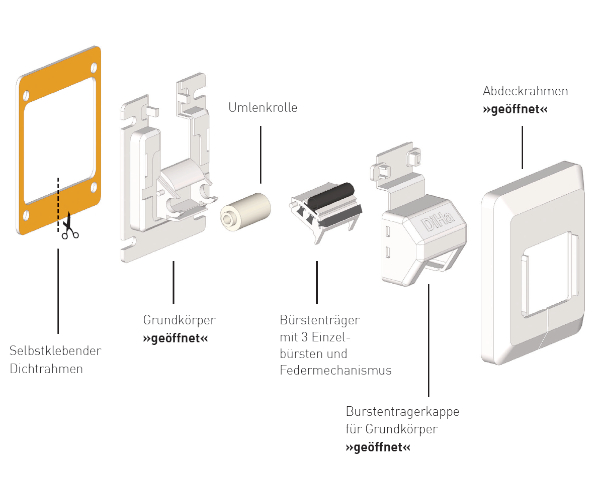 - Mit dreifacher, beweglicher Bürstendichtung